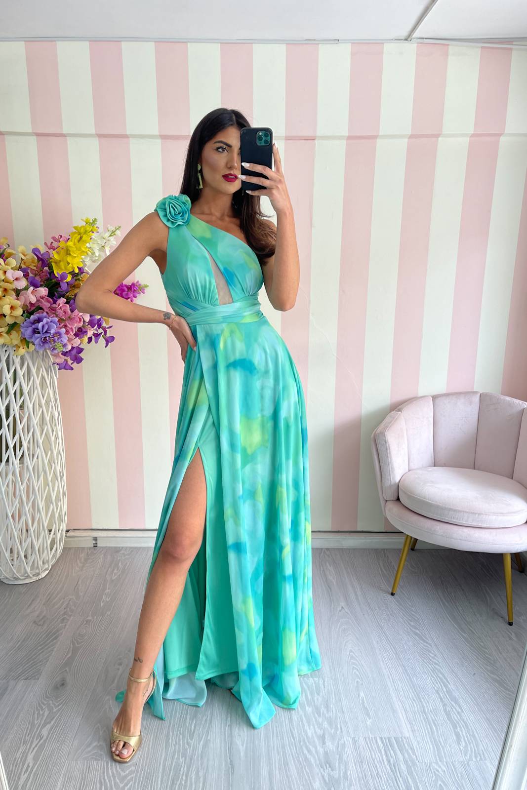Abito lungo, modello a monospalla