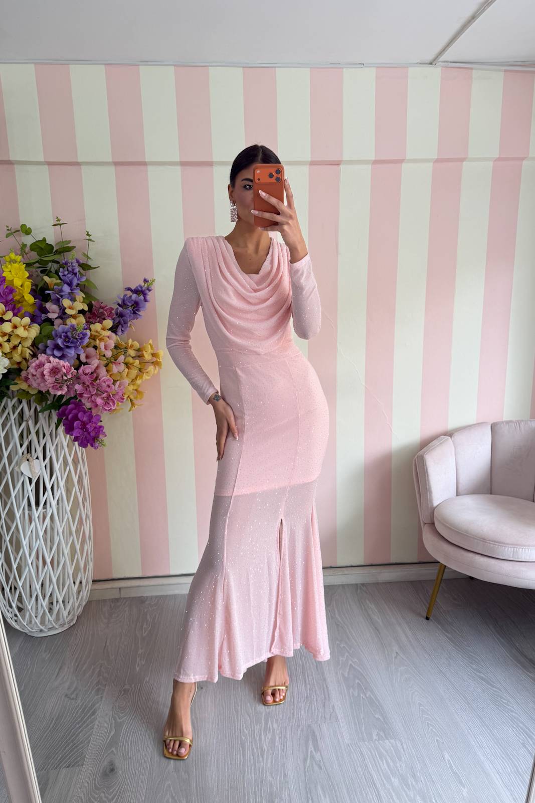 Abito lungo con scollo ad anello e spallina strutturata