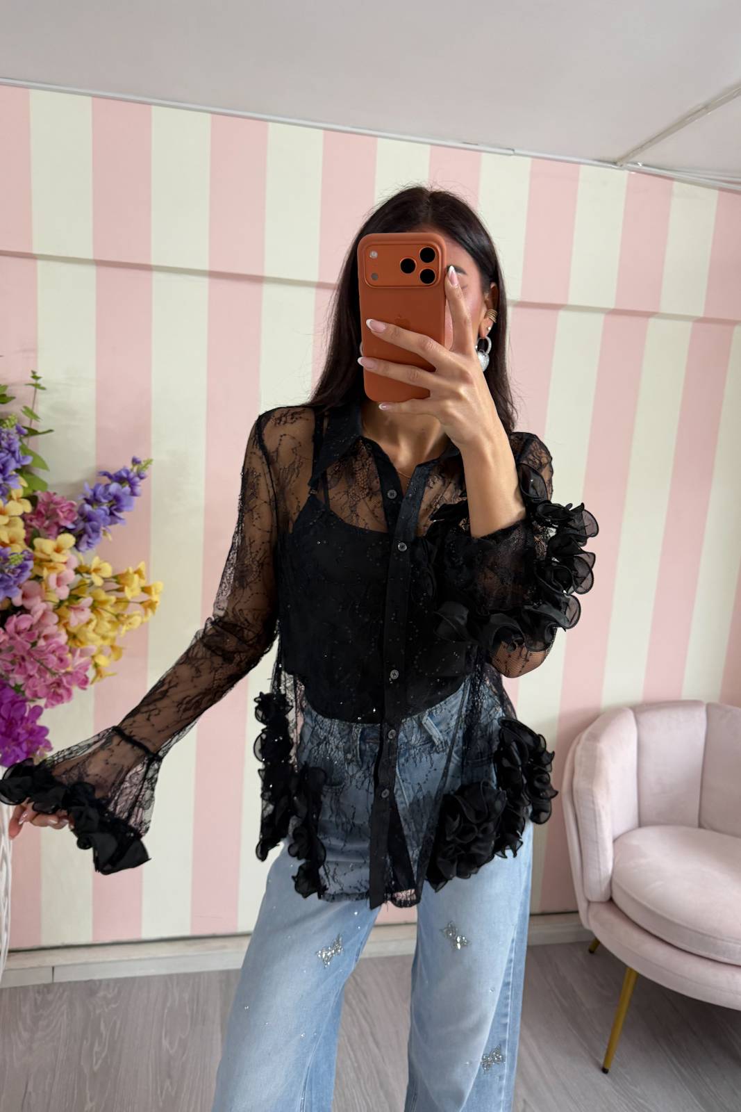 Camicia in pizzo traforato