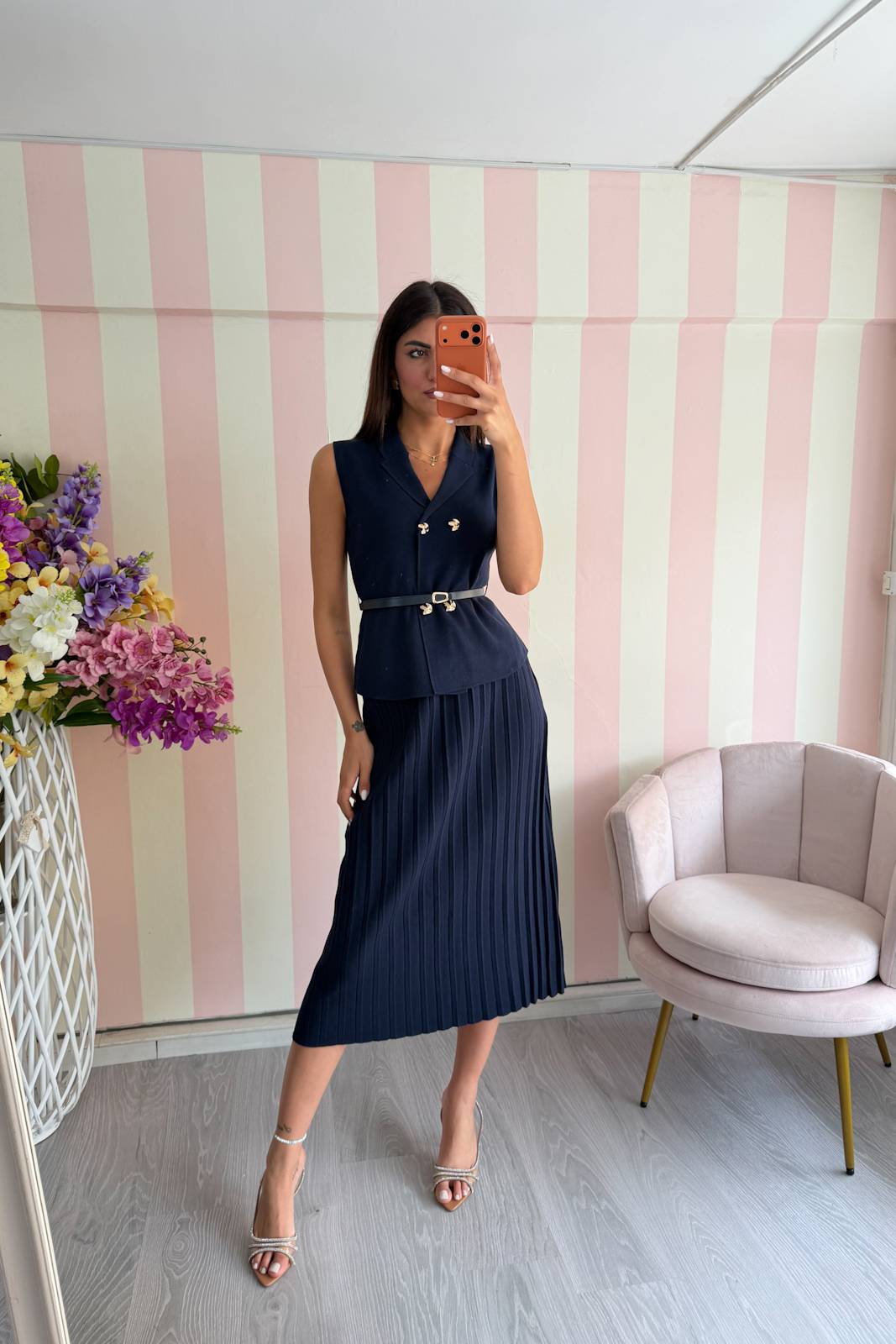 Gilet con abbottonatura frontale con cinturino in eco-pelle