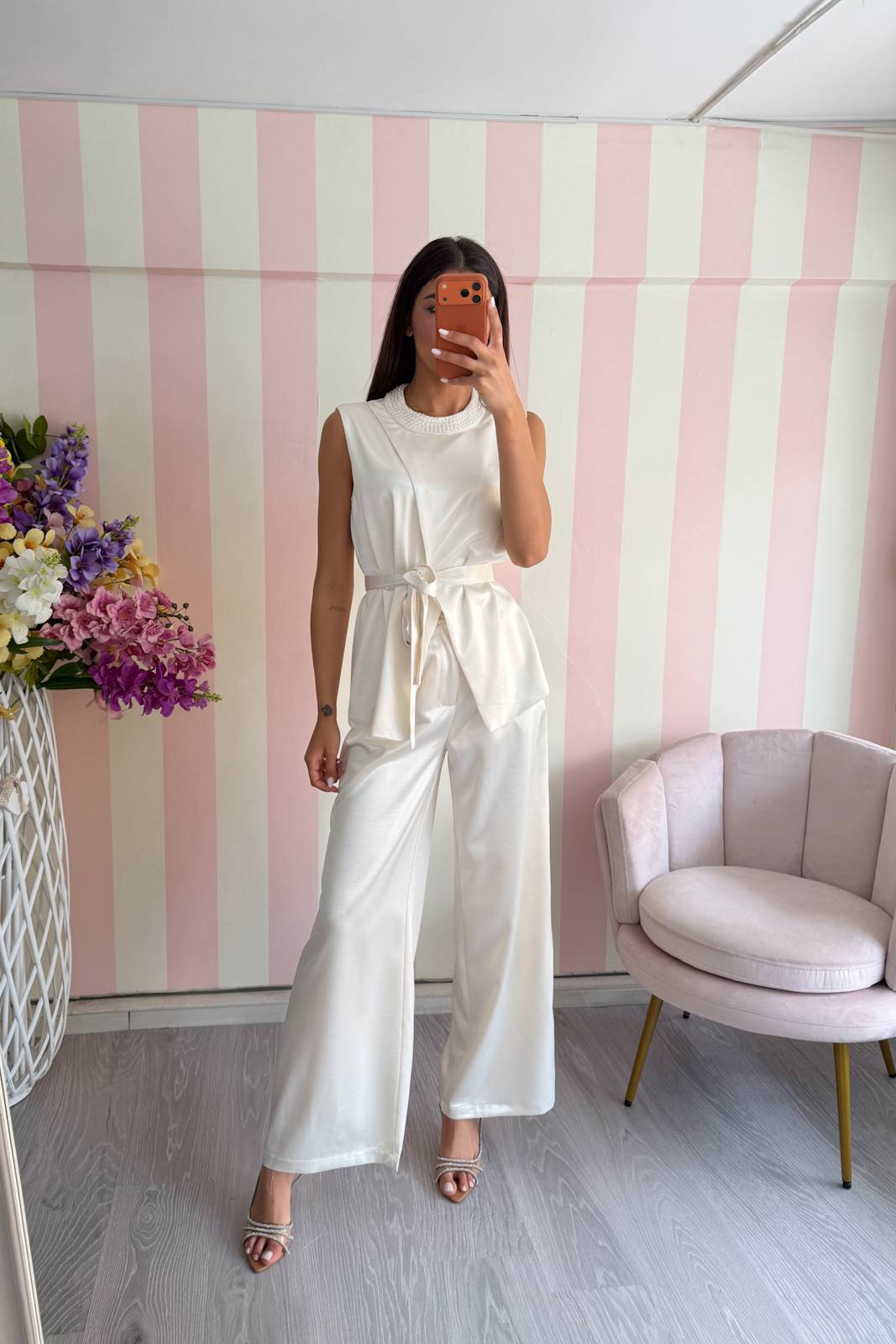 Pantaloni con elastico sul retro e chiusura frontale con cerniera e bottone