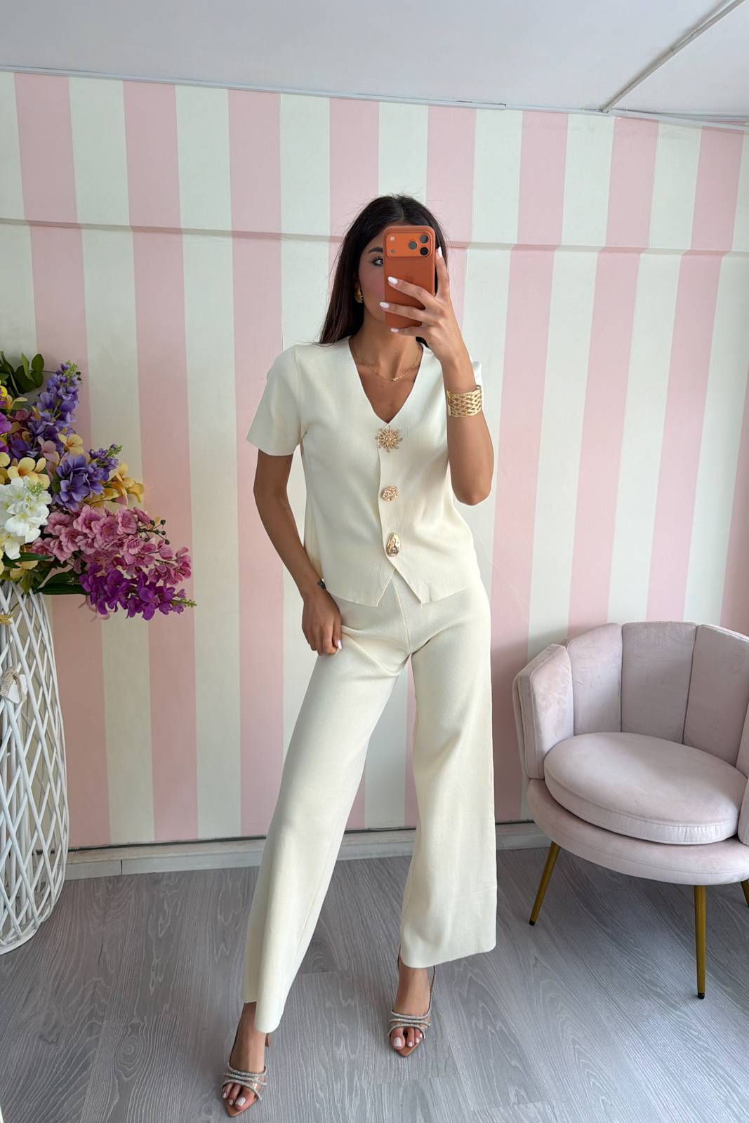 Abbottonatura frontale con bottoni in oro