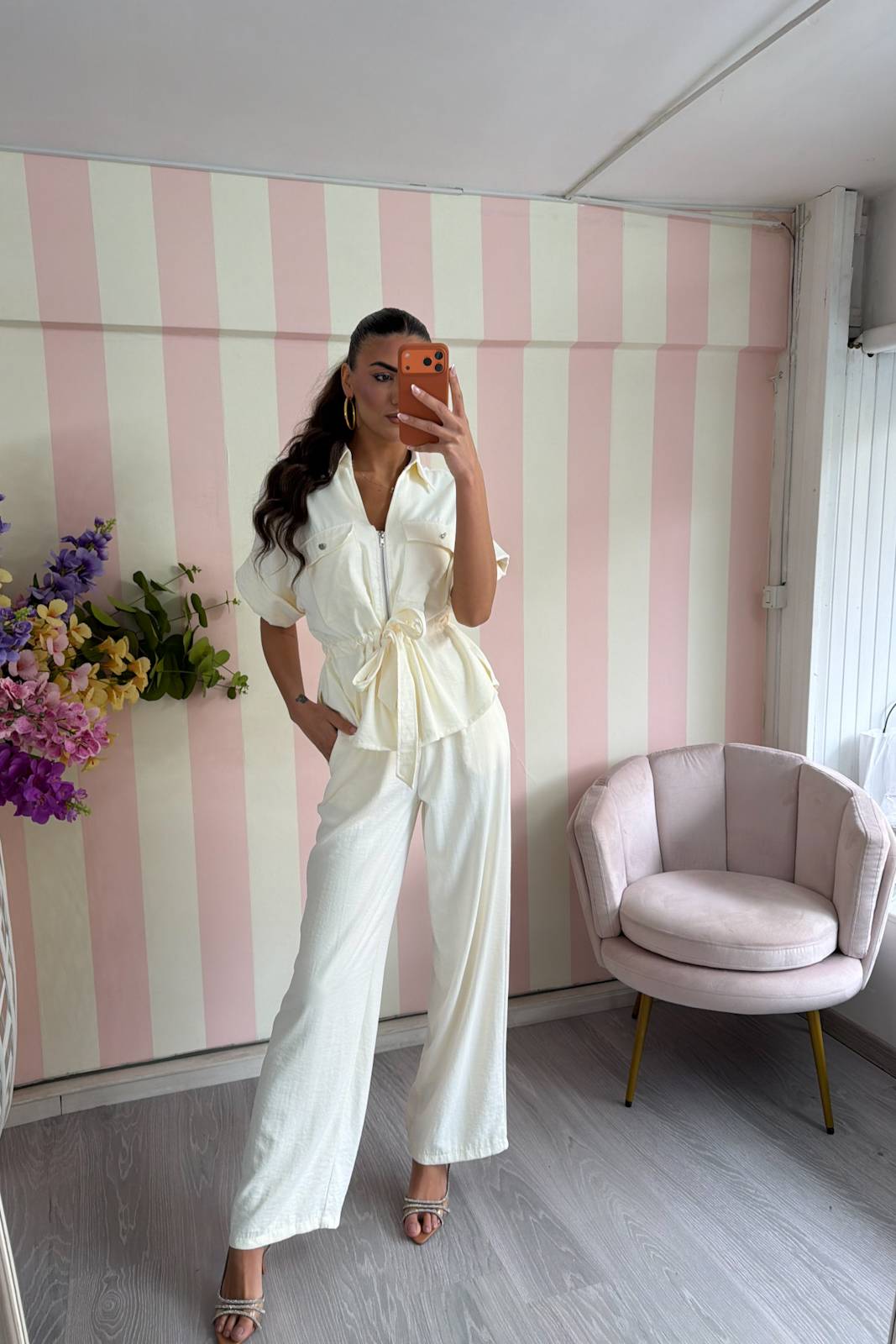 Blusa modello sahariana, mezza manica, coulisse in vita regolabile,